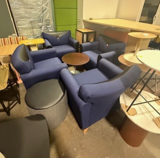 Navy blue club chairs with black accents.