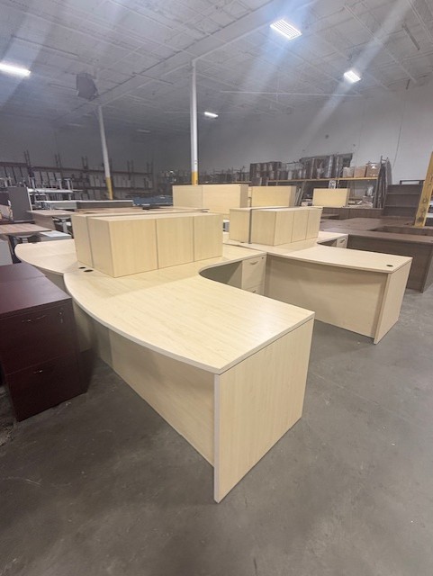 Maple L-desks with wall mount hutch.