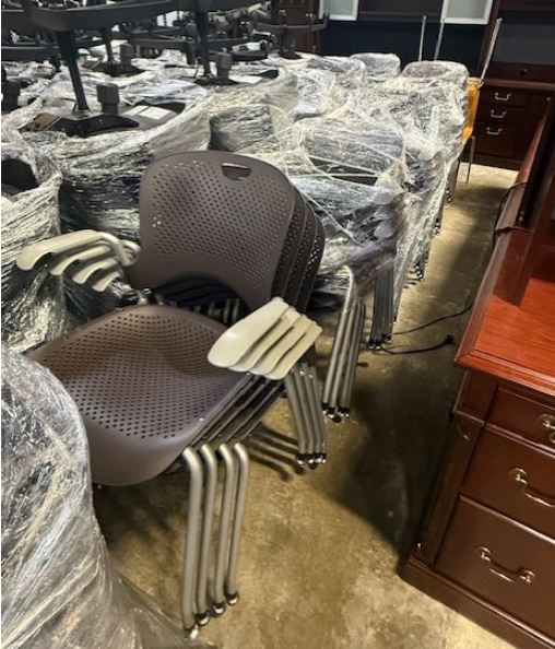 Brown Herman Miller Caper chairs with arms.