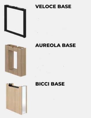 - Stainless steel, Aureola, Veloce, or Bicci base
